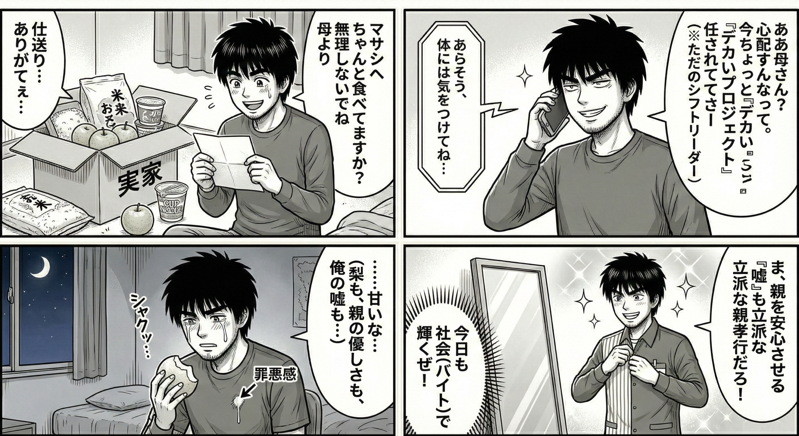 ある日の夕方、マサシの部屋に一つの段ボール箱が届いた。送り主は実家の母。