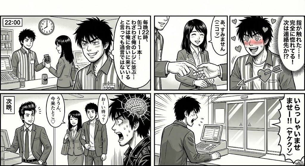 夜のコンビニに、少しだけむなしい声が響いた。