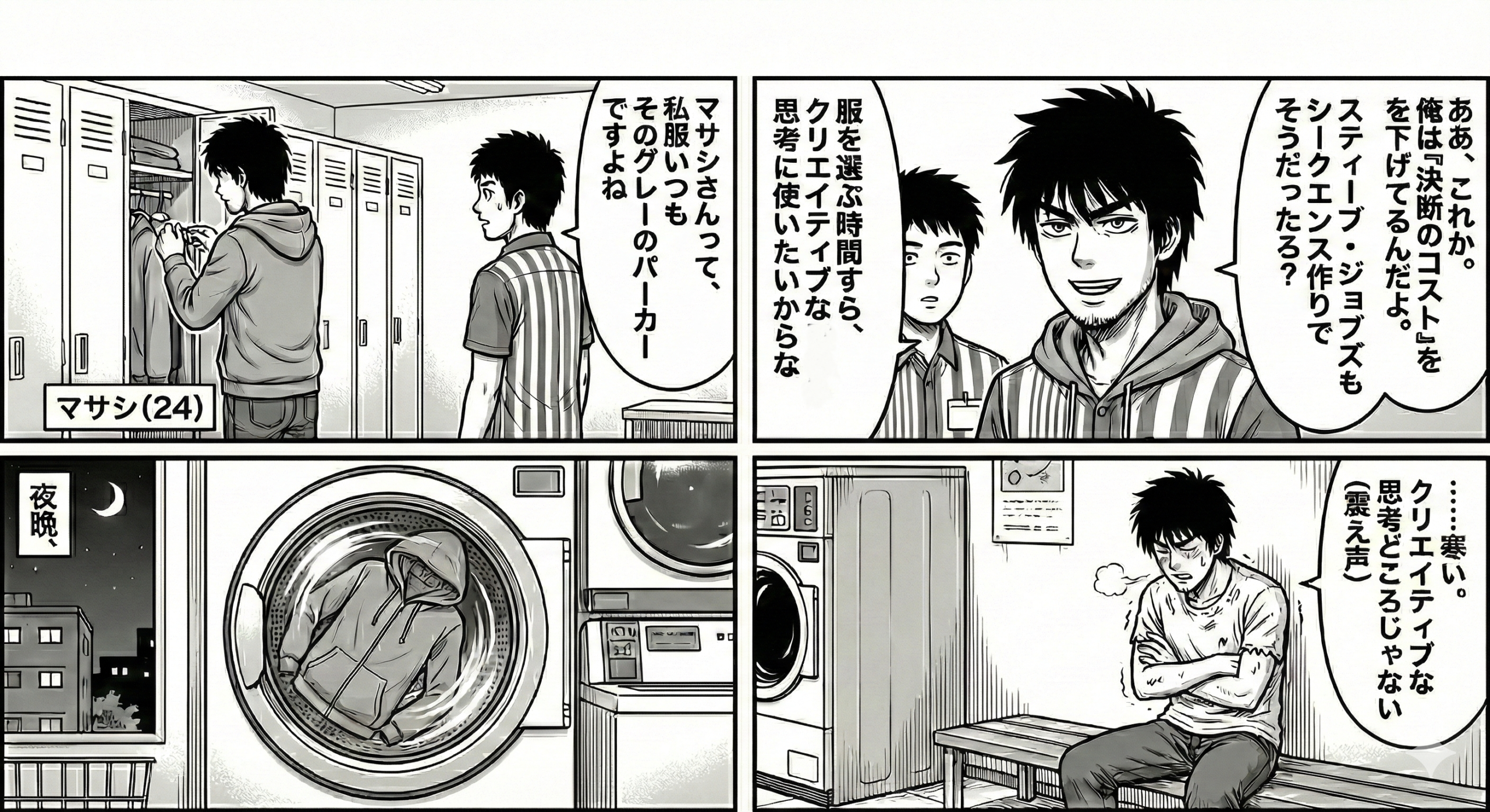 その前で、マサシはただ震えながら洗濯終了を待つのだった。