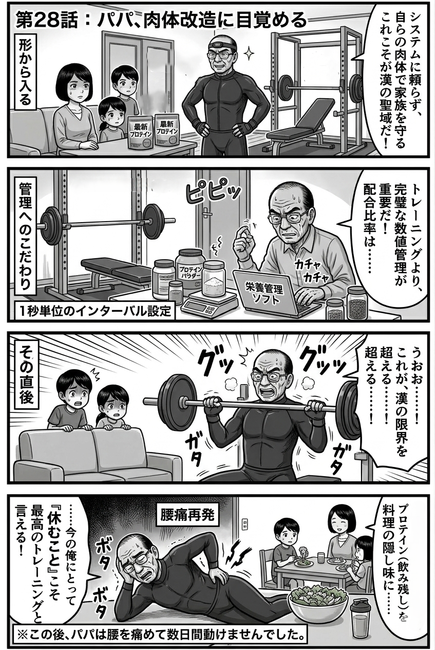 パパの情熱は、なぜかトレーニングそのものではなく「管理」に向かい始める。