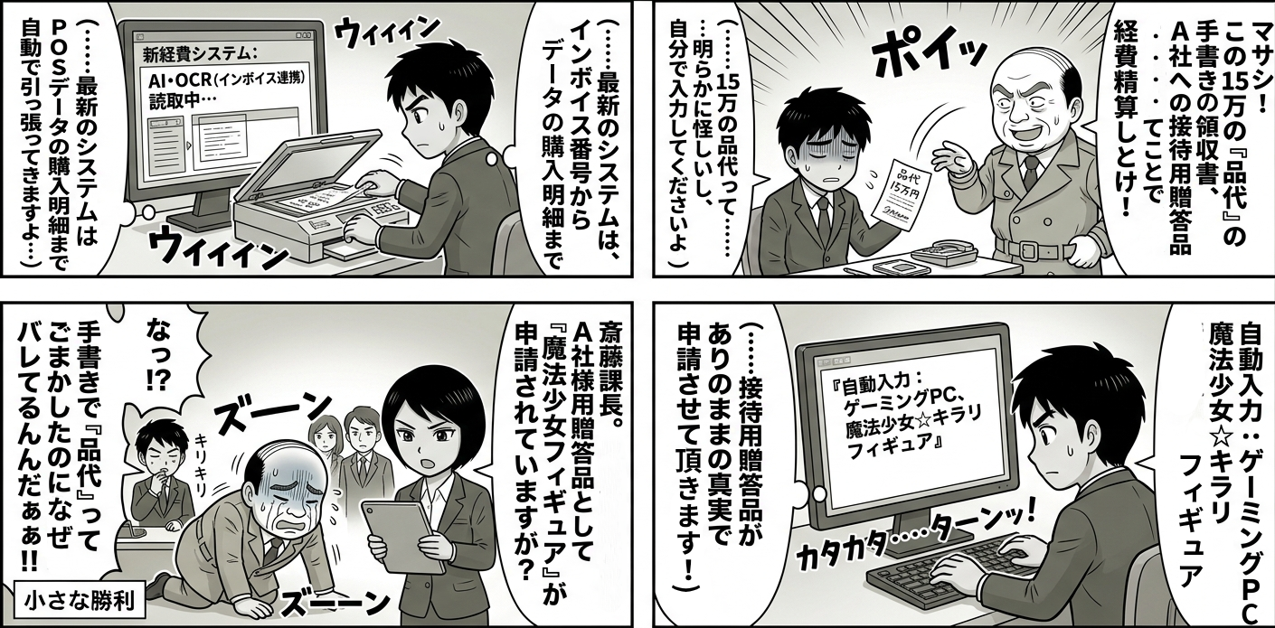 月末。オフィスに重たい空気が漂う季節――経費精算締切直前。