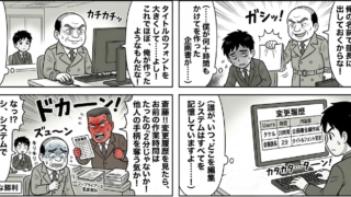 オリジナルWeb漫画:サラリーマン奮闘記シリーズ 第14話これまで数々の「システム敗北」を重ねてきたにもかかわらず、斎藤課長の姿勢はまったく変わらなかった。アナログ信仰と自己都合の解釈は今日も健在である。そんな中、今月から社内に新たな仕組み...