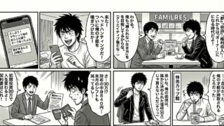 オリジナルWeb漫画:フリーター奮闘記シリーズ 第20話ある日の昼。マサシはカフェの窓際に座り、ノートパソコンを開いていた。カタカタカタ……キーボードを叩きながら、コーヒーを一口すする。その姿は、一見するとどこか仕事のできるクリエイターのよ...