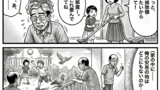 オリジナルWeb漫画:不屈な父親奮闘記シリーズ 第14話一週間の激務を終えた日曜日の朝。父はソファに深く腰を沈めながら、固く決意していた。「今週は疲れた……。今日は一歩も動かないぞ!」テーブルの上にはポテトチップスと缶ジュース。テレビのリモ...